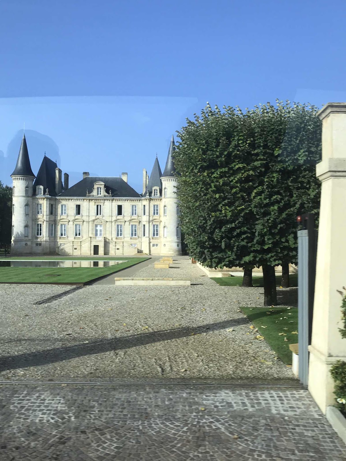 So we met at 7:45 o’clock and then on to the busses. First stop was drive-by a number of chateaus that produce wines. Many of these look like castles, which is the meaning of Chateau: ( a large French country house or castle often giving its name to wine made in its neighborhood.)